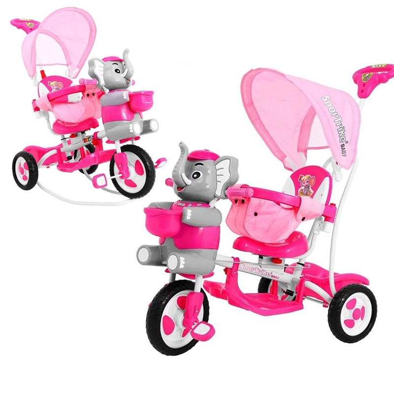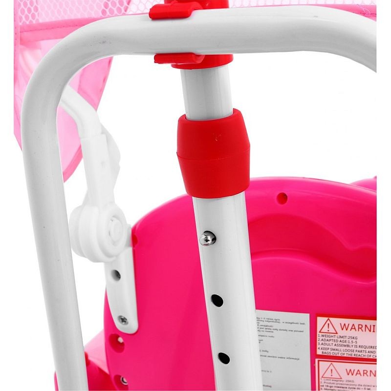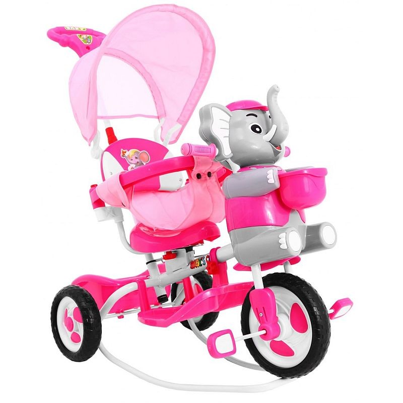 Tricicleta copii 2 in 1, balansoar cu efecte sonore, protectie soare, suport picioare, Happy Elephan roz