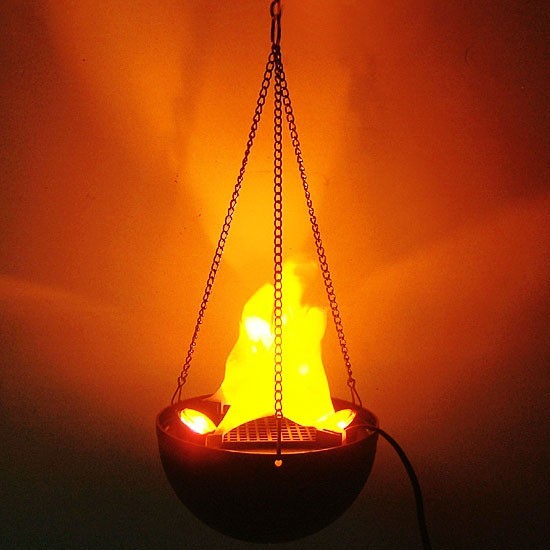 Aceasta reda efectul unui foc arzand fara insa a fi periculoasa in vreun fel. Lampa decorativa imita flacarile cu ajutorul unui mic ventilator care produce un curent de aer ce misca intr-o forma deosebita un material iluminat cu ajutorul a doua proiectoare de tip halogen, de 10W fiecare.