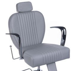 Cu o latime confortabila totala de 66 cm, acest scaun ofera spatiu suficient pentru a asigura o pozitie relaxata si comoda in timpul serviciilor de frizerie. Fabricat din piele ecologica gri deschis, este nu doar elegant, ci si usor de intretinut si curatat.