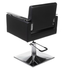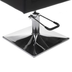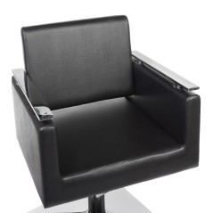 Scaunul are latimea de 50 cm si adancimea de 45 cm, oferind suficient spatiu si confort in timpul utilizarii. Este tapitat cu piele ecologica pentru o curatare facila, iar baza si cotierele sunt cromate, completand designul sofisticat al acestui scaun de coafor.