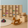 Raftul de depozitare pentru masinute, cu 80 de compartimente si un design deosebit in forma de camion, este solutia perfecta pentru organizarea jucariilor sau a colectiilor de masinute. Creat special pentru camera copiilor, dar potrivit si pentru colectionari, acest raft ajuta la mentinerea ordinii si la expunerea frumoasa a fiecarei masinute. Fiecare compartiment individual este gandit sa gazduiasca o masina separata, astfel incat colectia sa fie bine structurata si usor de admirat. Forma de camion ofera un plus de atractivitate, transformand organizarea intr-o activitate distractiva. Fixarea pe perete economiseste spatiu si asigura stabilitate. Raftul este fabricat din placaj rezistent, avand o constructie solida si un aspect estetic placut, in culoare bej, usor de integrat in orice decor. Incurajeaza colectionarea si ingrijirea jucariilor, dezvoltand simtul responsabilitatii si al ordinii. Ideal pentru a transforma camera copilului intr-un spatiu organizat si plin de personalitate!