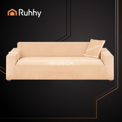 Husa elastica pentru canapea, universala, 190-230 cm, husa perna 45x45 cm, catifea, bej