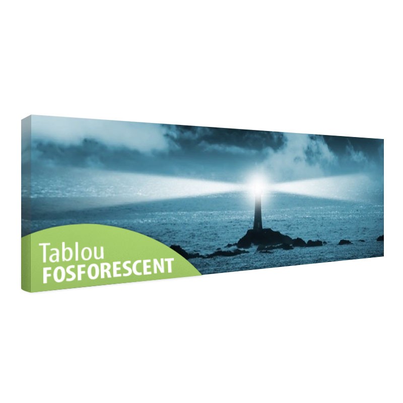 Tabloul fosforescent Far pe timp de noapte este o imprimare de inalta rezolutie pe canvas profesional, avand proprietatea de a lumina in intuneric. In prezenta luminii naturale sau artificiale arata ca orice alt tablou obisnuit dar in intuneric imaginile imprimate devin vizibile dezvaluind imagini suprinzatoare. Cerneala folosita la imprimare este ecologica si nu contine plumb sau fosfor avand o mare putere de retinere-emitere de energie prin absorbtia luminii naturale sau artificiale.Imaginile luminoase imprimate se incarca cu energie luminoasa din orice sursa de lumina naturala sau artificiala dupa o expunere de aproximativ 10-15 de minute.Pot fi montate cu usurinta prin simple operatiuni de agatare si centrare. Tablourile sunt inramate pe un cadru solid din lemn natural netratat chimic.Redand peisaje, flori, orase, imagini abstracte sau tematice, religioase, moderne sau retro, pentru copii sau pentru cei mari, tablourile fosforescente pot decora si lumina orice incapere. Ce parinte isi poate refuza placerea de a oferi copilului sau bucuria de a avea un companion luminos pe parcursul intregii nopti …