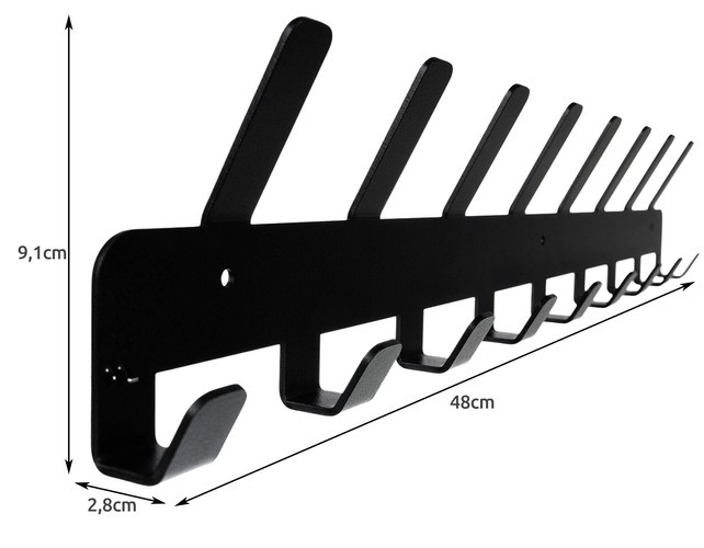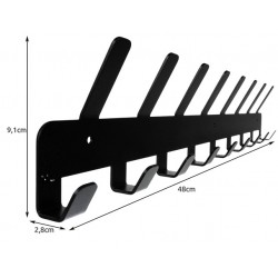Cuier de perete, 17 carlige, suruburi prindere incluse, metal, 9.1 x 48 x 2.8 cm, negru