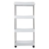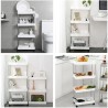 Etajera modulara, 4 rafturi depozitare, roti pivotante 360 grade, 4 carlige prosoape, 91,5x37x12 cm