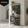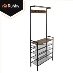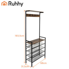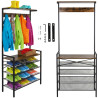Suport vertical de depozitare, 4 rafturi pantofi, cuier haine, cadru metal, placa MDF