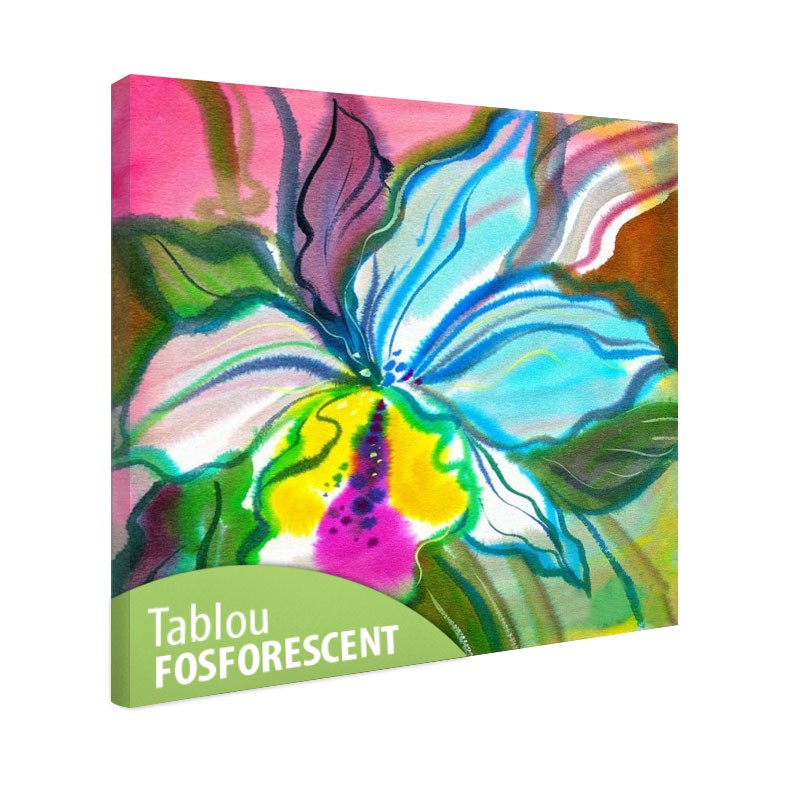 Tabloul fosforescent Orhidee abstracta este o imprimare de inalta rezolutie pe canvas profesional, avand proprietatea de a lumina in intuneric. In prezenta luminii naturale sau artificiale arata ca orice alt tablou obisnuit dar in intuneric imaginile imprimate devin vizibile dezvaluind imagini suprinzatoare. Cerneala folosita la imprimare este ecologica si nu contine plumb sau fosfor avand o mare putere de retinere-emitere de energie prin absorbtia luminii naturale sau artificiale.
