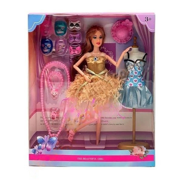 Papusa este complet echipata cu o rochita eleganta, iar manechinul poate fi folosit pentru a expune diferite tinute. Setul include o palarie eleganta, diferite masti si o gama de bijuterii, perfecte pentru a adauga un plus de stil si rafinament.