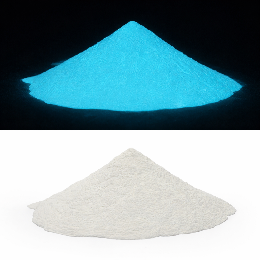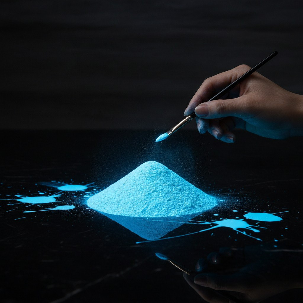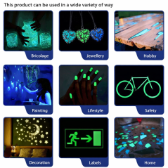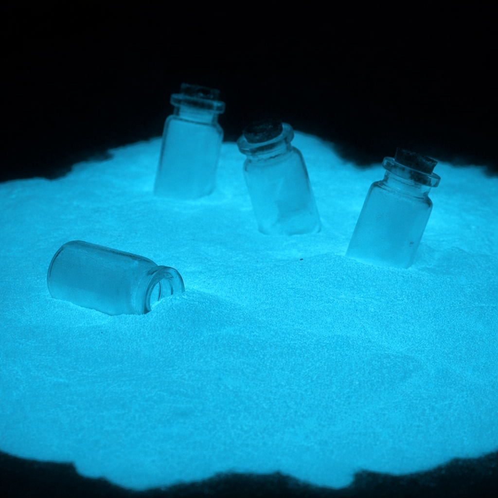 Pigment fosforescent aqua (turquoise) adaugat in orice compozitie poate sa lumineze aqua intens intre 8 si 12 ore dupa o incarcare la orice sursa de lumina: bec cu incandescenta, lumina solara, lampa UV, lampa flourescenta, etc.