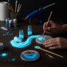 Este recomandat sa faceti teste pe cantitati mici de pigment aqua (turquoise) de amestec, pana cand ajungeti la rezultatul dorit intrucat pigment fosforescent aqua (turquoise) reactioneaza diferit in functie de solutia de compozitie.