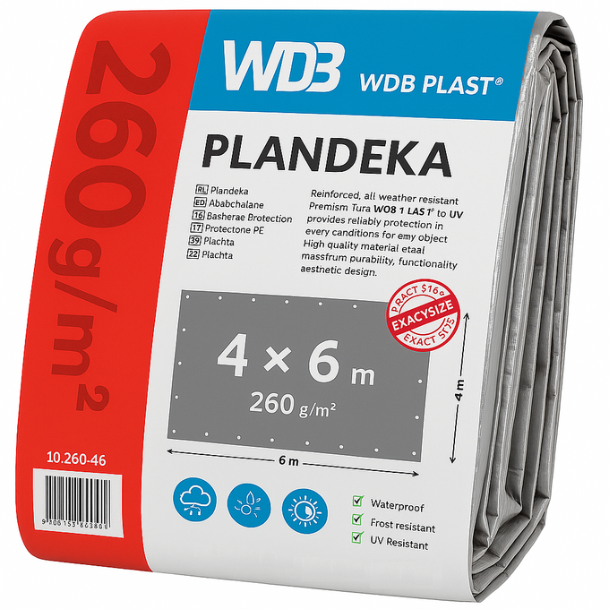 Prelata ranforsata 4 x 6 m, cu densitate de 260 g/mp, este o solutie robusta si eficienta pentru protejarea bunurilor impotriva conditiilor meteo nefavorabile. Conceputa pentru utilizari intensive, aceasta prelata ofera un nivel ridicat de rezistenta la uzura, fiind potrivita atat pentru gospodarie, cat si pentru aplicatii profesionale in constructii, agricultura sau transport.