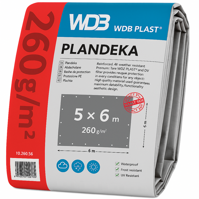 Prelata ranforsata 5 x 6 m, cu densitate de 260 g/mp, este o solutie robusta si eficienta pentru protejarea bunurilor impotriva conditiilor meteo nefavorabile. Proiectata pentru utilizari intensive, aceasta prelata ofera o rezistenta ridicata la uzura, fiind potrivita atat pentru gospodarie, cat si pentru aplicatii profesionale in constructii, agricultura sau transport.