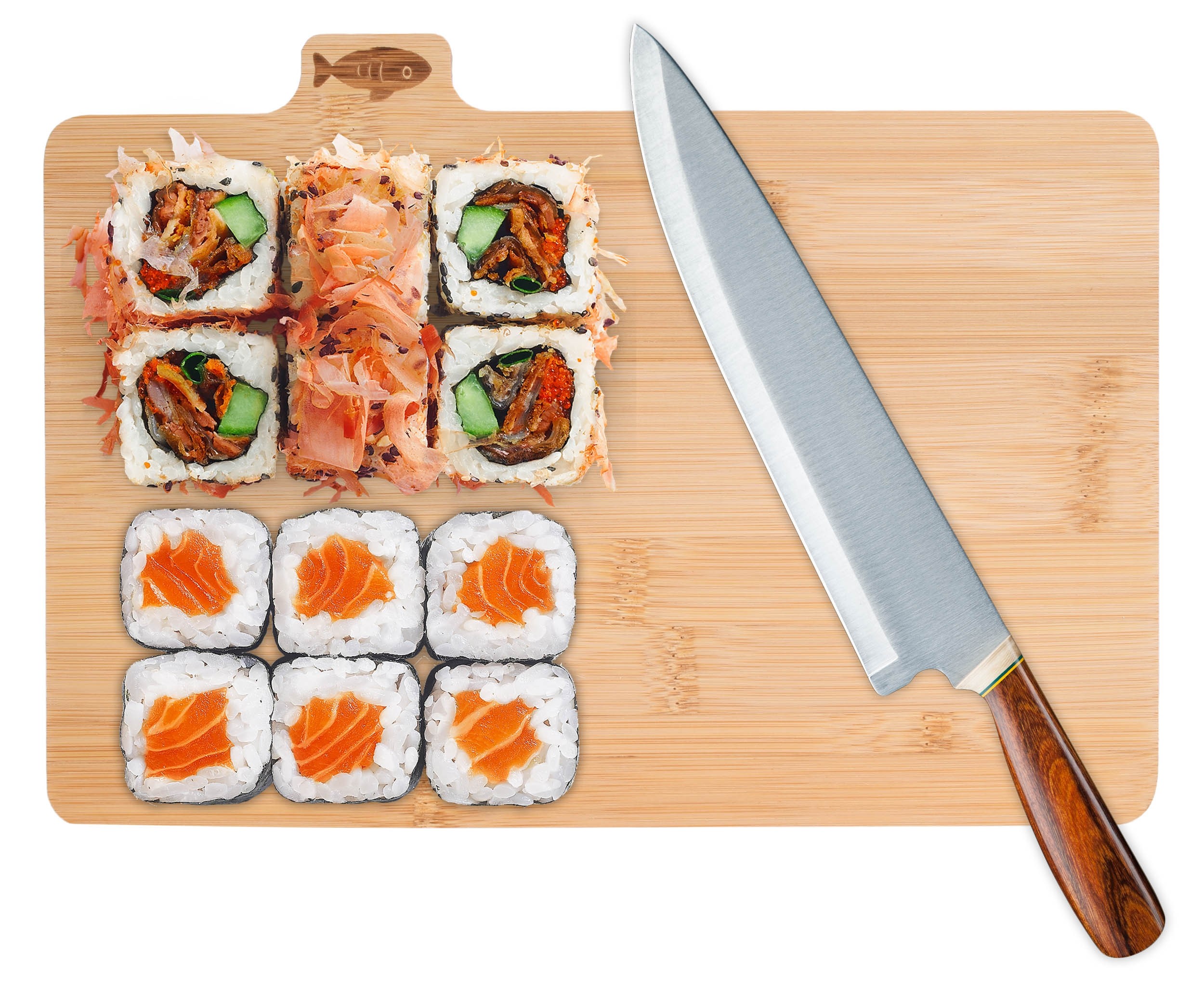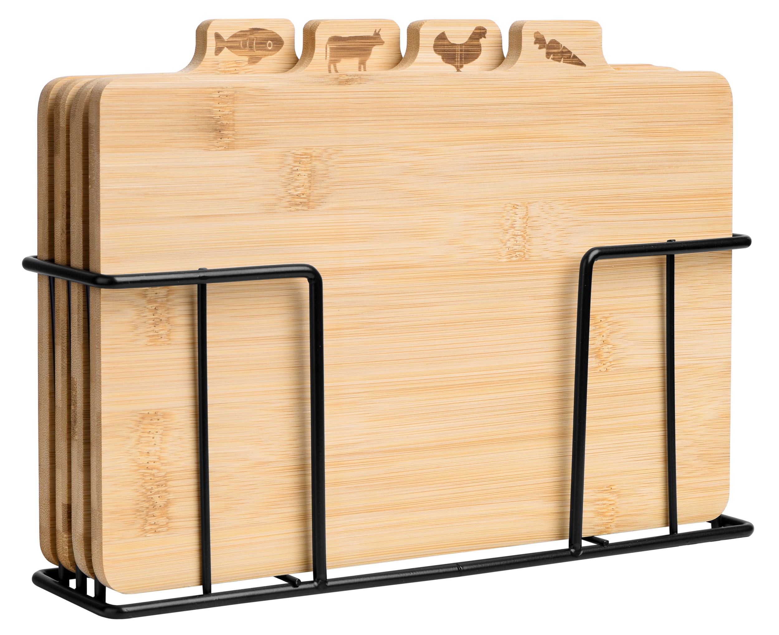 Set 4 tocatoare din bambus, pentru peste, carne rosie si alba, legume, suport otel, 28x18x0,9 cm