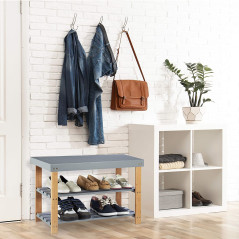 Pantofar din bambus, tip bancuta, MILOS, capacitate 6 perechi incaltaminte, maxim 100 kg, gri/natur