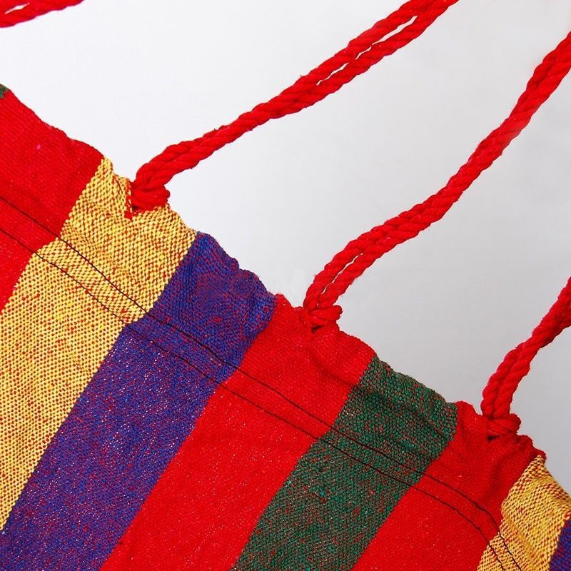 Daca va petreceti timpul liber in acest hamac veti avea parte de un confort deosebit. Hamacul pentru doua persoane poate fi folosit atat in sptatii inchise cat si in spatii exterioare. Cu ajutorul franghiilor de suspensie poate fi agatat cu usurinta oriunde.