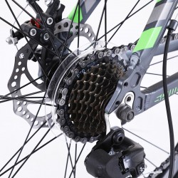 Bicicleta este echipata cu schimbator de viteze Shimano care asigura o schimbare rapida si usoara a vitezelor adaptandu-va imediat la orice situatie. Bicicleta dispune de 21 viteze iar franele acesteia sunt pe disc, acest tip de frane fiind mult maieficient si rezistent comparative cu franele clasice tip V.