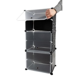 Raftul modular are o usa care se deschide, astfel incat pantofii nu sunt expusi prafului. Usa este transparenta, asa ca, in ciuda inchiderii, puteti vedea clar continutul raftului si puteti gasi cu usurinta perechea care va intereseaza.