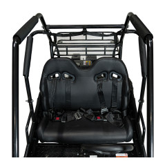 Sistemul de franare hidraulic pe disc, amortizoarele reglabile si anvelopele cu profil adanc ofera aderenta si stabilitate superioare, indiferent de teren. Cabina este prevazuta cu cusca de siguranta ranforsata, scaun sport impermeabil cu centuri de siguranta si posibilitate de ajustare in 3 trepte – pentru confort si protectie maxima.