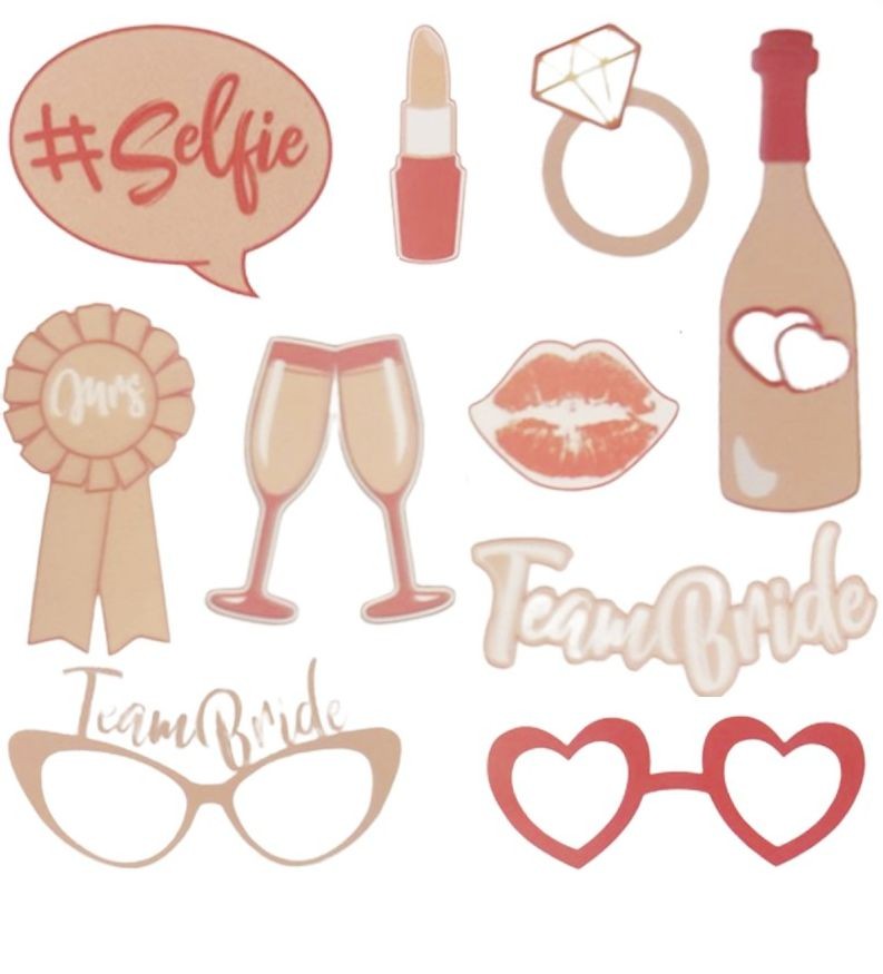 Propsurile sunt ideale pentru petrecerea burlacitelor, diferite sedinte foto, sau pentru fotografiile din ziua nuntii. Setul contine 10 propsuri in diferite forme: ochelari, pahare, ruj, inel, sticla, buze, etc. Fotografiile din cadrul petrecerii vor fi cu siguranta unice si speciale.