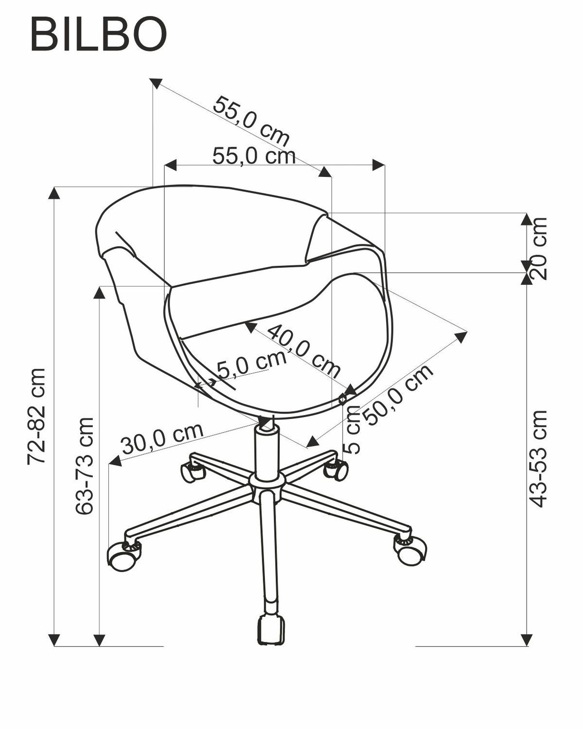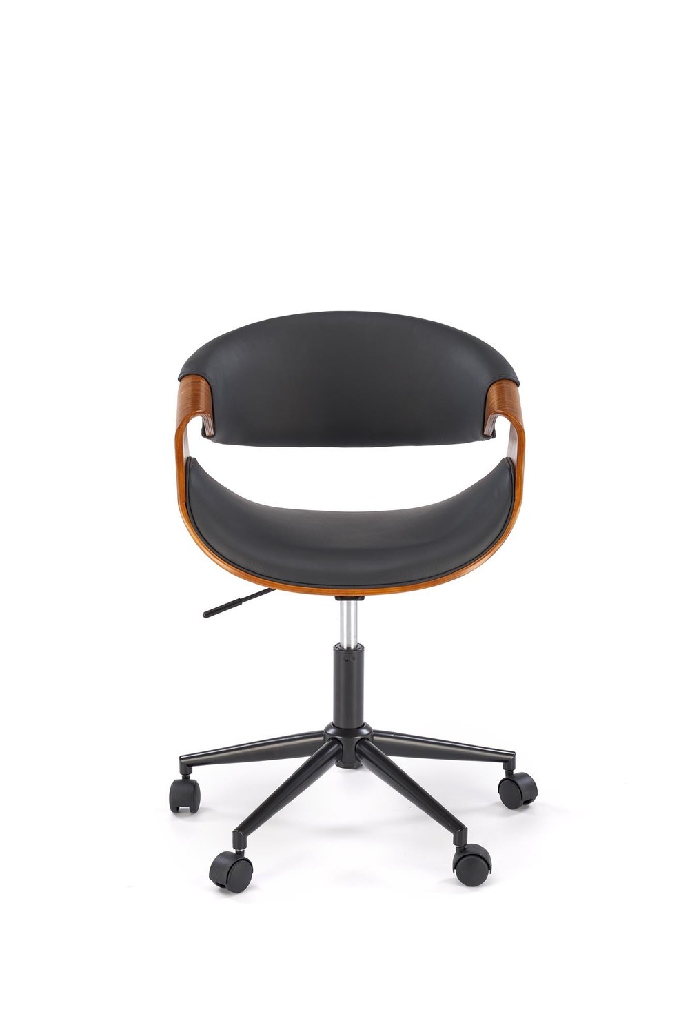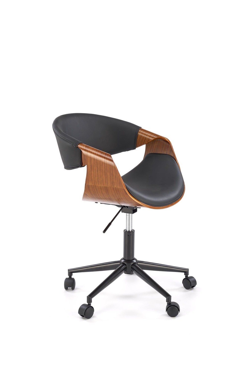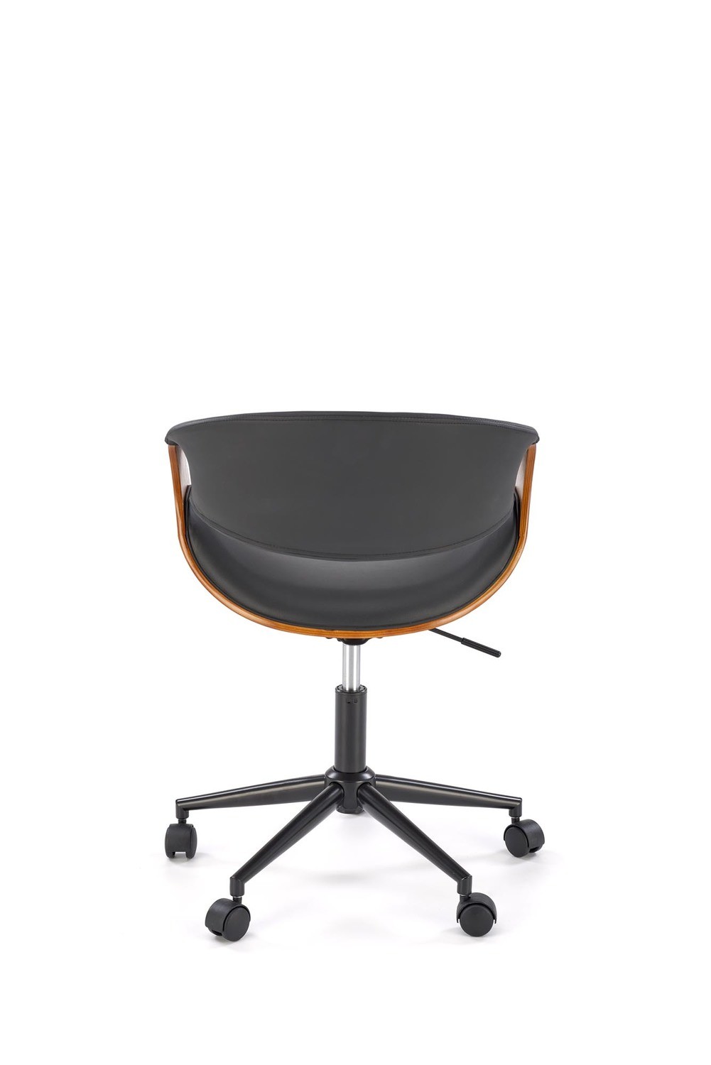 Scaun birou rotativ Bilbo, inaltime reglabila 72-82 cm, design scandinav, baza metal, piele eco si placaj, maro/negru