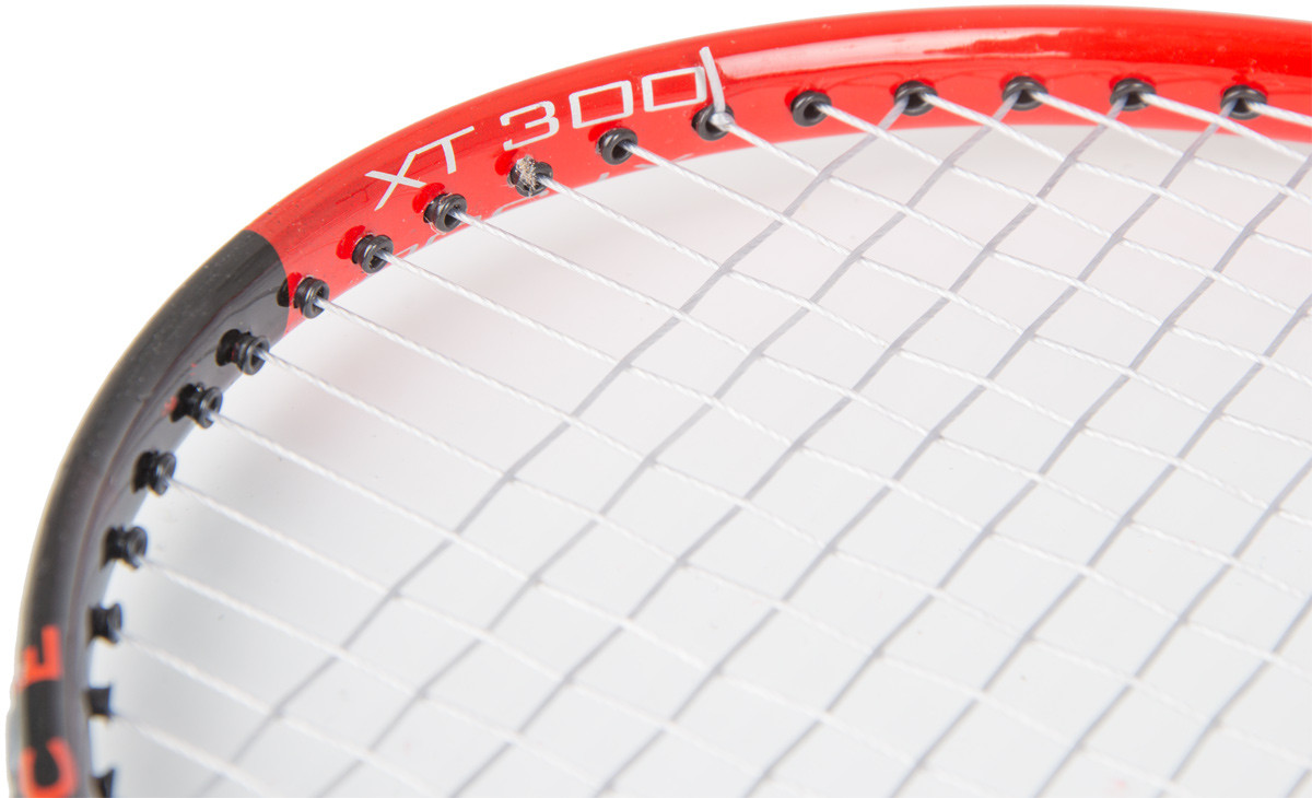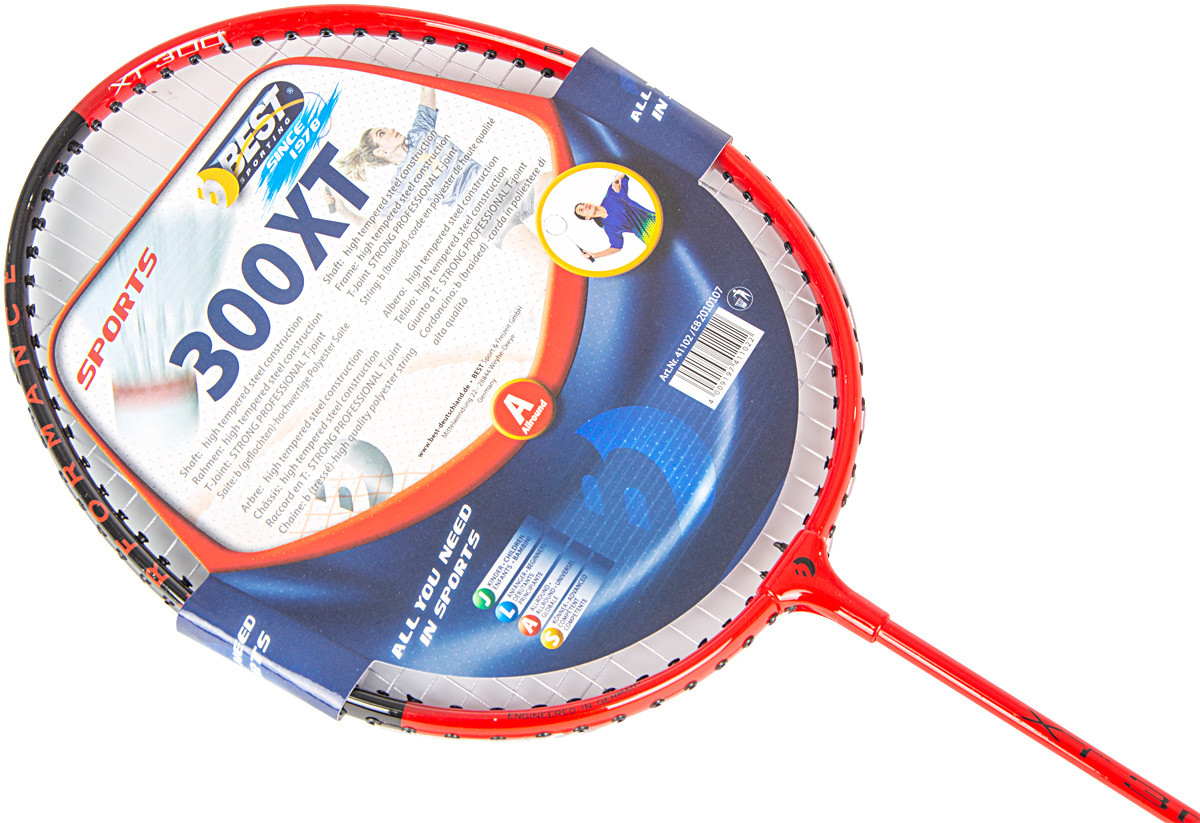 Racheta badminton 300XT, dimensiunea A, maner ergonomic, 18-22 LBS, banda prindere din PU, negru si rosu