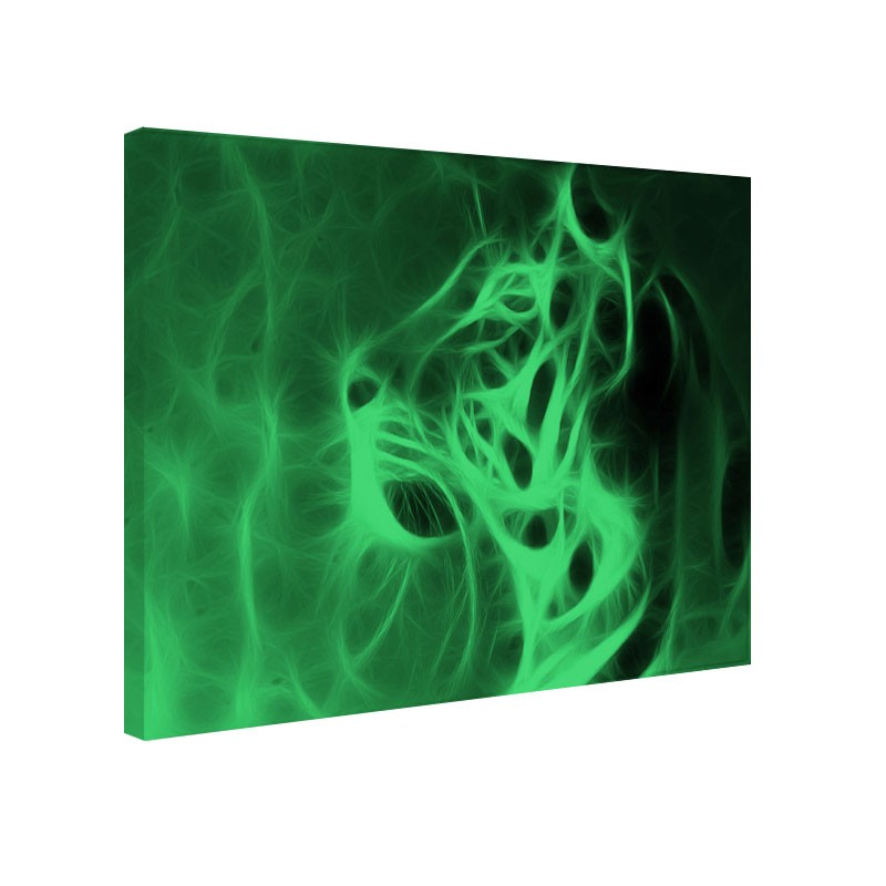 Tabloul fosforescent Cap de tigru este o imprimare de inalta rezolutie pe canvas profesional, avand proprietatea de a lumina in intuneric. In prezenta luminii naturale sau artificiale arata ca orice alt tablou obisnuit dar in intuneric imaginile imprimate devin vizibile dezvaluind imagini suprinzatoare. Cerneala folosita la imprimare este ecologica si nu contine plumb sau fosfor avand o mare putere de retinere-emitere de energie prin absorbtia luminii naturale sau artificiale.