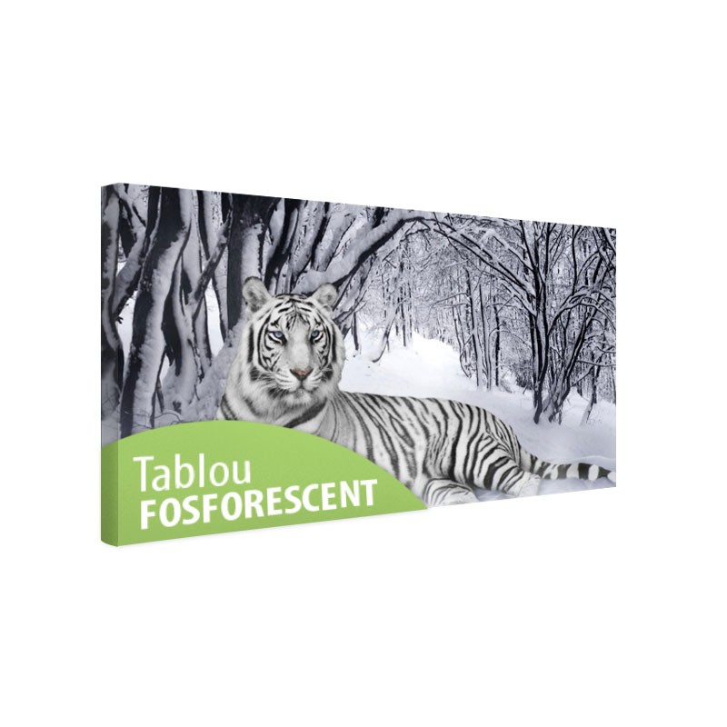 Tabloul fosforescent Tigru alb este o imprimare de inalta rezolutie pe canvas profesional, avand proprietatea de a lumina in intuneric.