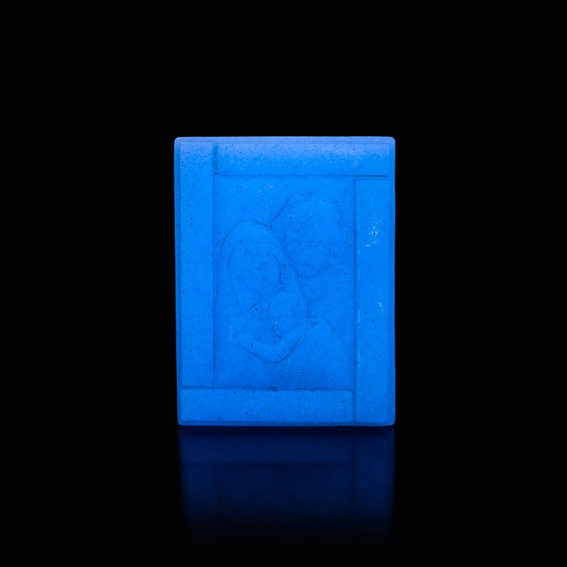 Acest mini tablou lumineaza fosforescent in intuneric dupa o expunere de aproximativ 5-10 minute la orice sursa de lumina naturala sau artificiala.