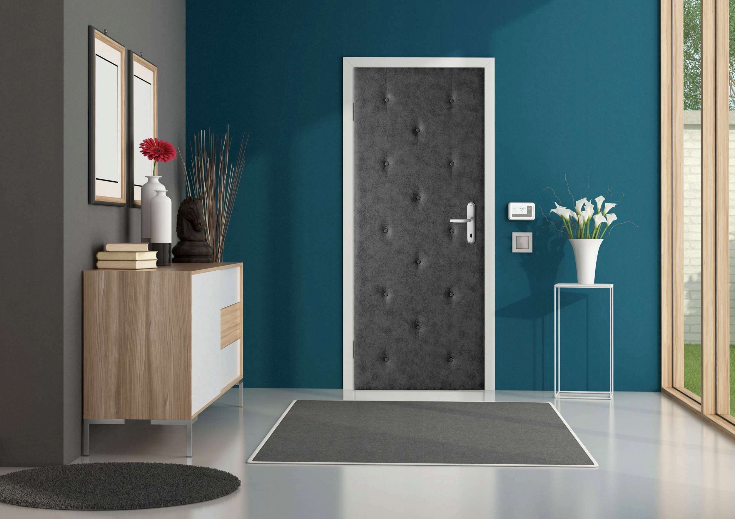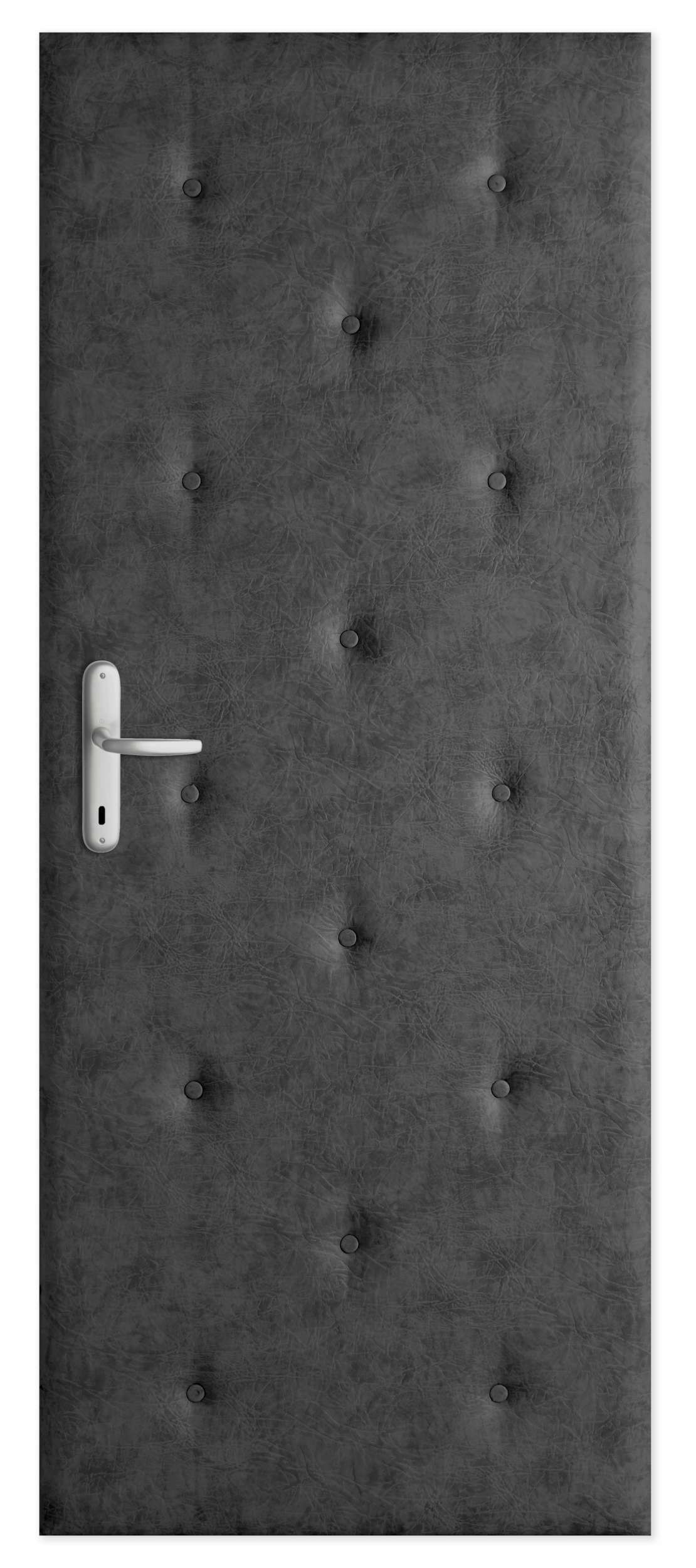 Tapiterie usa latime 95 cm, piele ecologica gri, izolatie termica si fonica, burete T21 de 1,5 cm