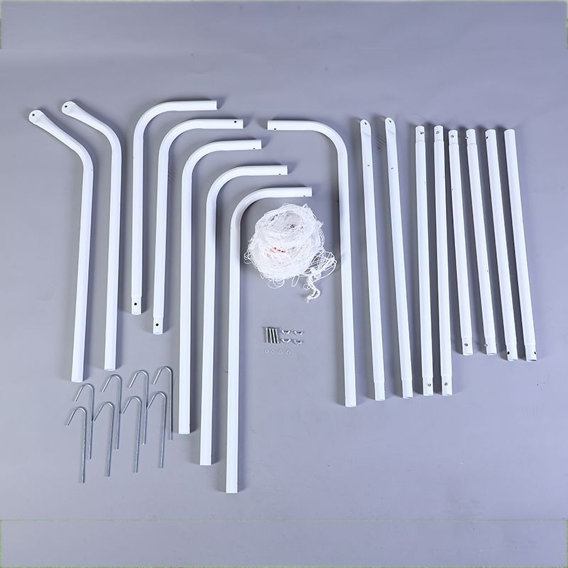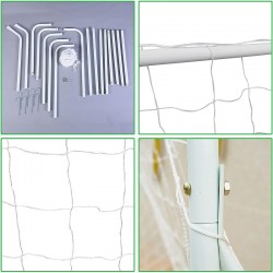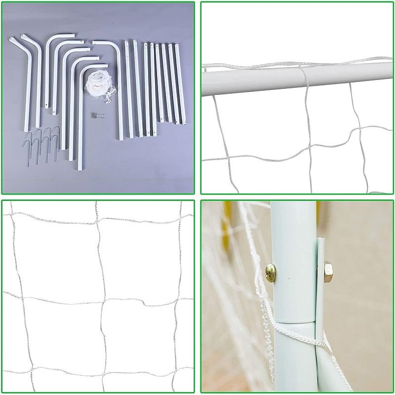 Poarta este confectionata din otel si plasa din poliester, avand o structura usoara si stabila. Are latimea generoasa de 213 cm si inaltimea de 150 cm.
