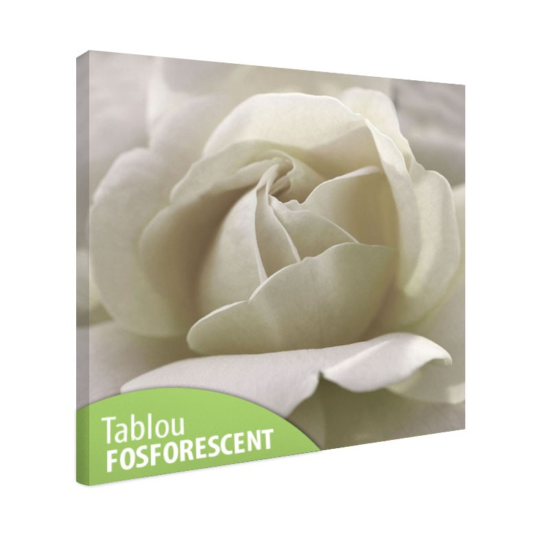 Tabloul fosforescent Trandafir alb este o imprimare de inalta rezolutie pe canvas profesional, avand proprietatea de a lumina in intuneric. In prezenta luminii naturale sau artificiale arata ca orice alt tablou obisnuit dar in intuneric imaginile imprimate devin vizibile dezvaluind imagini suprinzatoare. Cerneala folosita la imprimare este ecologica si nu contine plumb sau fosfor avand o mare putere de retinere-emitere de energie prin absorbtia luminii naturale sau artificiale.