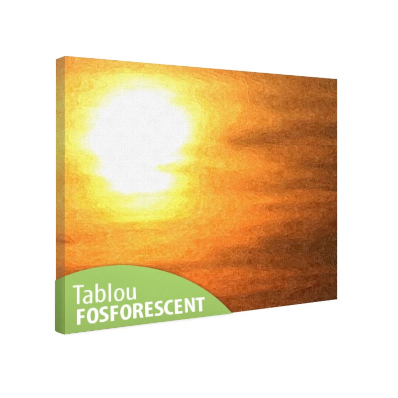 Tabloul fosforescent Apus de soare vara este o imprimare de inalta rezolutie pe canvas profesional, avand proprietatea de a lumina in intuneric. In prezenta luminii naturale sau artificiale arata ca orice alt tablou obisnuit dar in intuneric imaginile imprimate devin vizibile dezvaluind imagini suprinzatoare. Cerneala folosita la imprimare este ecologica si nu contine plumb sau fosfor avand o mare putere de retinere-emitere de energie prin absorbtia luminii naturale sau artificiale.