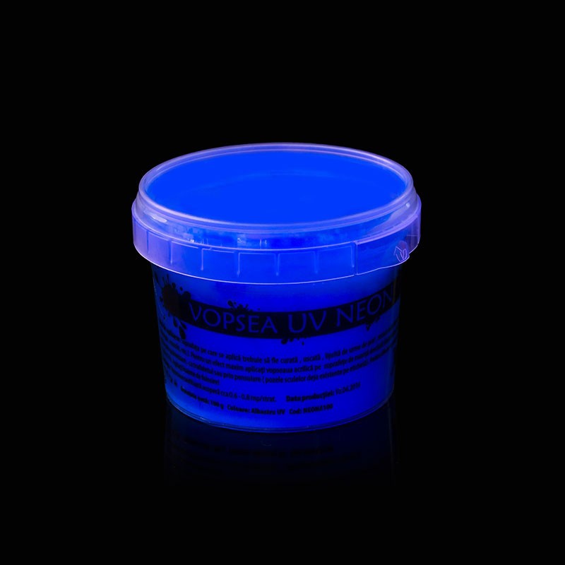 Vopseaua UV neon albastra este o vopsea speciala sensibila la lumina UV, ingloband pigmenti fluorescenti care prin proprietatile lor elibereaza lumina in culoarea albastru intens atunci cand este expusa in lumina UV, fiind de culoare albastra la lumina normala a zilei.
